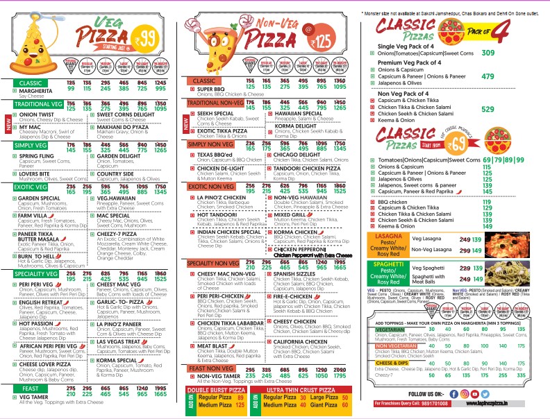 Welcome to La Pino'z Pizza - Phulwari Sharif, where indulgence meets innovation! Nestled in the vibrant Haroon Colony of Patna, this pizza haven is renowned for its impressive menu, featuring the eye-catching monster pizza that spans a whopping 61 centimeters. Customers rave about the fresh, crispy crust and generous toppings, creating a delightful culinary experience.